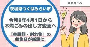 つくばみらい市 令和8年4月1日から「不燃ごみ」の出し方変更へ|「金属類・割れ物」の収集日が新設