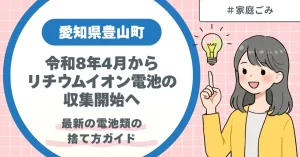 愛知県豊山町にお住まいの皆さん、令和8年4月よりリチウムイオン電池を含む電池の路線収集が新しく始まることをご存知でしょうか。 近年、電池類が他のごみに混ざって排出されることで全国の破砕処理施設やごみ収集車で発火事故が多発 […]
