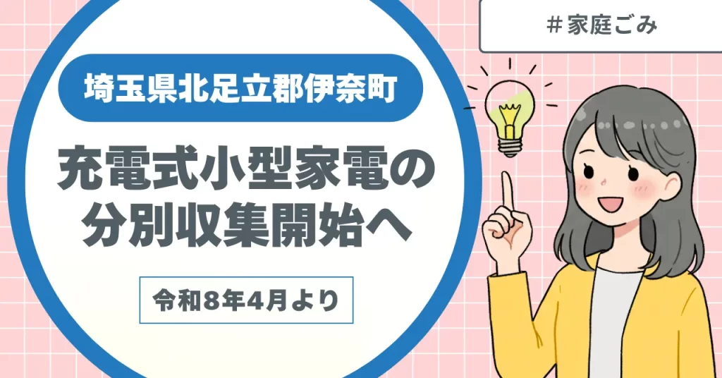 埼玉県北足立郡伊奈町では、令和8年4月1日から、これまで役場や「ゆめくる」で実施していた「充電式小型家電」の回収に加え、新たに分別回収が始まります。