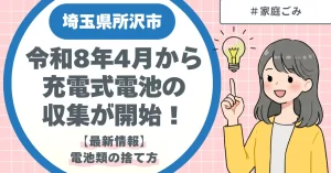 リチウムイオン電池やニッケル水素電池、ニカド電池などの充電式電池による火災事故は全国的に増加しており、所沢市でも火災対策の一環として、令和8年4月より充電式電池やモバイルバッテリーの収集を開始しています。 本記事では、「 […]