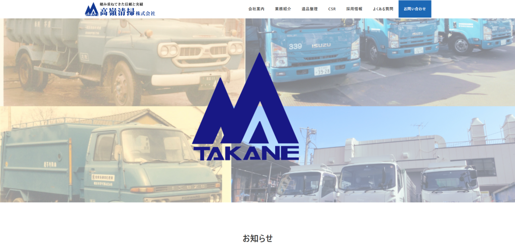 高嶺清掃株式会社は、東京都・千葉県・神奈川県・埼玉県を対象に、事業系一般廃棄物および産業廃棄物の収集運搬・中間処理を行う業者です。自社の中間処理施設では、破砕・圧縮・溶融などにより廃棄物の減容と再資源化を実現しています。定期回収や粗大ごみ処理にも対応し、法令改正にも迅速に対応できる体制を整えています。