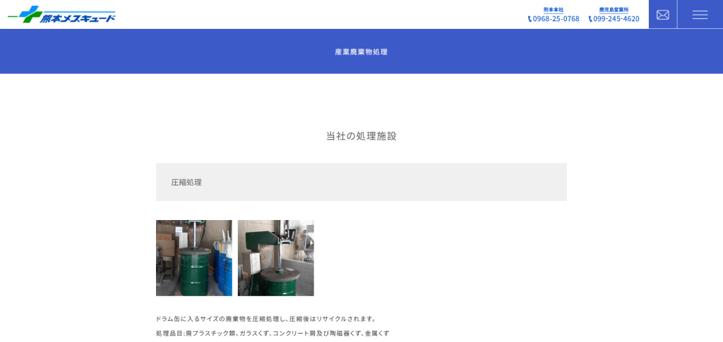 株式会社熊本メスキュードは、産業廃棄物および医療廃棄物の収集・運搬から中間処理まで一貫対応し、ゼロ・エミッションを目指しています。1998年設立以来、2000℃溶融処理システム「MESSCUD」を導入し、感染性廃棄物の安全処理にも実績があります。さらに、紙・プラスチック・金属など多様な廃棄物の圧縮・破砕・選別処理に対応(処理能力10〜9,504kg/日)。複数都府県での収集運搬許可を保有し、マニフェスト発行やエコアクション21認証で法令順守と安心の品質管理を実現しています。