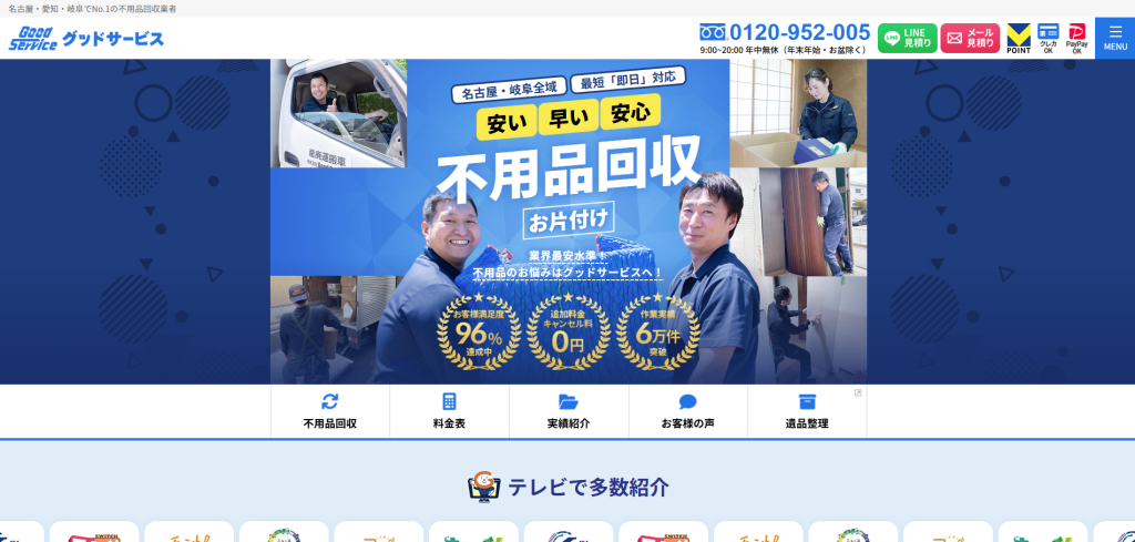 愛知・名古屋を中心に不用品回収、買取、遺品整理、生前整理、ゴミ屋敷片付けを提供。業界最安値水準の料金設定で、即日対応や女性スタッフ対応も可能です。買い取れる品は査定し、処分費用から差し引くことでコストを抑えられます。
